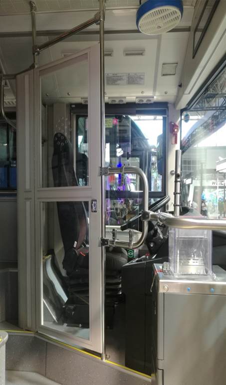 司机包围位于司机驾驶座和紧邻驾驶座的乘客座位之间,将驾驶座与乘客座位隔离成独立空间/区域,人性化的设计,独立工作空间。 1.为客车司机提供独立的驾驶空间,保证能够减少干扰司机驾驶客车,确保驾驶车辆的行车安全 2.合理的后包围的结构能提供给司机较大的驾驶空间,提高工作环境舒适度 3.作为整车内饰的一部分,满足车内的整体视觉效果和结构,可布置相应的警示和工益提示,有助于减少野蛮的“客乘纠纷”,避免不必要的纠纷影响